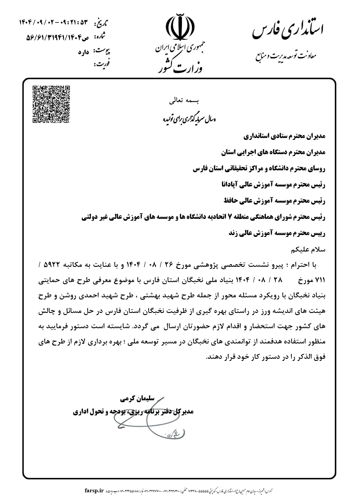 اطلاعیه معرفی طرح های حمایتی بنیاد ملی نخبگان استان فارس